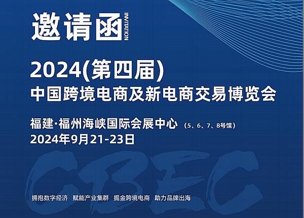 由中國中小商業企業協會、中國國際商會、福建省自貿國際商聯合主辦的 “CBEC2024(第四屆)中國跨境電商及新電商交易博覽會”將于2024年9月21日-23日在福建·福州海峽國際會展中心隆重舉辦!