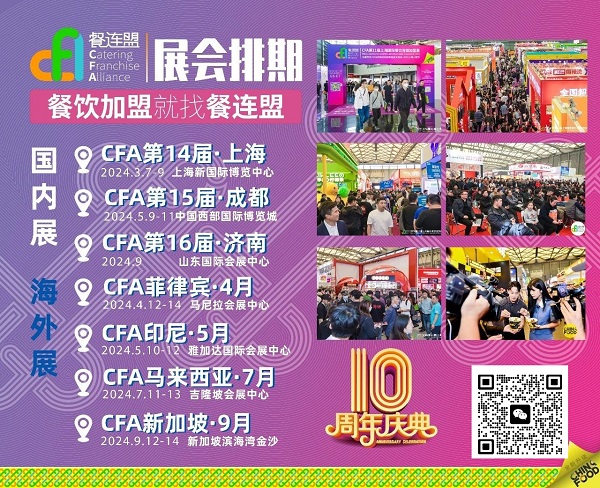 上海*大規(guī)模加盟展,3月7-9日,坐擁黃金招商旺季季,為廣大品牌強(qiáng)勢開啟招商旺季。在一個滿是魚的池塘里釣魚總比在大海里廣撒網(wǎng)更具成效。CFA餐連盟(原CHINA  FOOD)于2015年創(chuàng)辦,是中國**專注餐飲連鎖的加盟展會。專注餐飲連鎖,深度賦能**招商。致力于持續(xù)推動中國餐飲品牌連鎖化發(fā)展,推動餐飲千城萬店。CFA:定位中國餐飲開年第*展,每年3月從上海出發(fā),布局全國市場。作為中國餐飲連鎖風(fēng)向標(biāo)、上海蕞大加盟展、中國餐飲投資加盟**平臺!癈FA餐連盟”聚焦餐飲各賽道眾多頭部品牌、**品牌、熱門品牌及廣大餐飲投資人的熱切目光,無疑成為各大展商**的品牌發(fā)布、招商加盟、渠道代理、合作聯(lián)營的交互平臺。CFA:專注餐飲招商,助力品牌千城萬店 因為專注,所以**  餐飲加盟 就找 CFA餐連盟