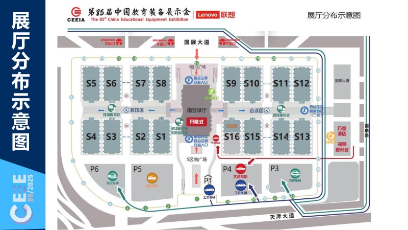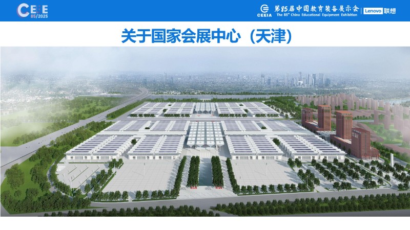 第85屆中國教育裝備展示會使用的展館是國家會展中心(天津),該展館是商務部和天津市人民政府合作共建的重點項目,體量龐大、造型規(guī)整,集展覽、會議、商業(yè)、辦公、酒店功能于一體。總建筑面積約138萬平方米,其中室內(nèi)展覽面積約40萬平方米, 室外展覽面積約15 萬平方米,為中國展覽面積最大、使用體驗最佳的會展綜合體。項目分兩期建設(shè),本次展會使用的一期工程總建筑面積約80萬平方米,室內(nèi)展覽面積約20萬平方米,總停車位數(shù)5000余個。一期展館由16個單層無柱展廳構(gòu)成,每個展廳規(guī)格均按展覽規(guī)律設(shè)置,可提供1.25萬平方米的展覽面積,凈高16m。