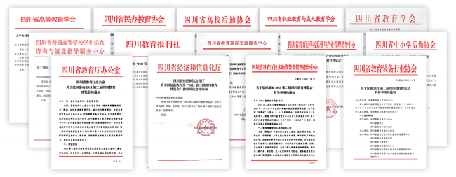 (時任四川省教育廳廳長李江,四川省教育廳副廳長崔昌宏,中共四川省委教育工委副書記、教育廳黨組成員張瀾濤,教育部關心下一代工作委員會常務副主任、中國教育裝備行業協會原會長王富,四川省教育廳一級巡視員胡衛鋒,四川省教育廳二級巡視員王羽,四川省經濟和信息化廳二級巡視員蘇平,四川省教育裝備行業協會會長張林祥,四川省學校國有資產與教育裝備中心主任王方文,四川省教育信息化與大數據中主任劉漢濤出席歷屆四川教博會)