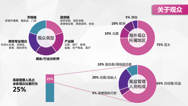上海國際消費電子技術展(Tech G)是旨在打造面向亞太及全球市場的科技行業盛會,集中展示5G、人工智能、虛擬現實和汽車技術等革命性技術。Tech G 將為品牌推廣提供理想的平臺和機會,著重實現企業品牌增值,幫助企業建立合作伙伴關系,助力科技技術的跨界應用,促進科技與實體經濟的深度融合。 當今世界技術革新正推動消費電子行業飛速發展,尤其在中國,消費電子技術應用場景廣泛,蘊藏巨大的市場規模和發展潛力。為肩負起搭建消費技術國際交流合作展示平臺,促進亞洲科創企業騰飛,以及強化上海科技創新策源功能的責任與使命,在上海市商務委員會、上海市經濟和信息化委員會以及上海市科學技術委員會的指導下……