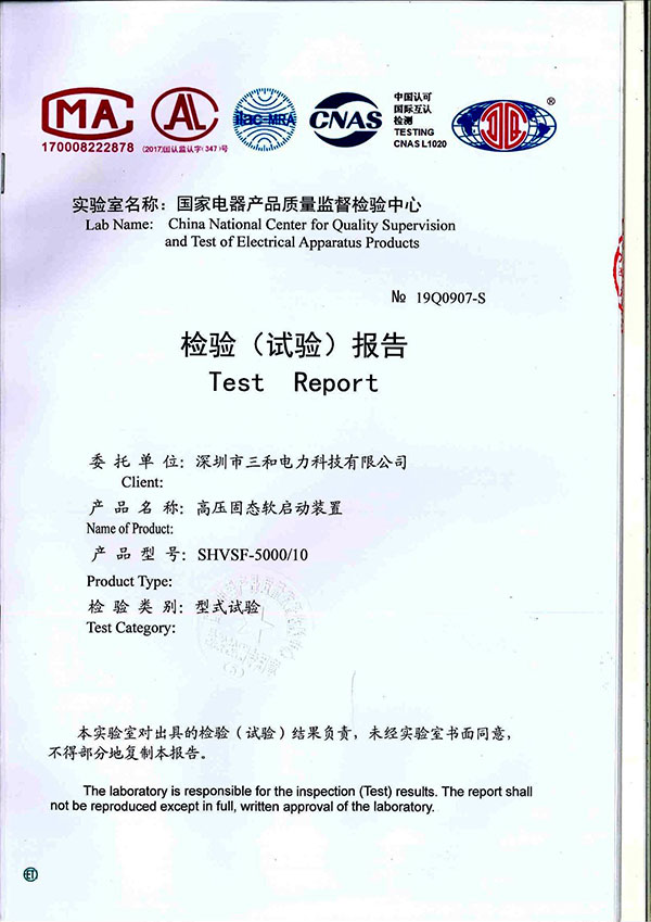 我司高壓固態軟啟動裝置通過型式試驗