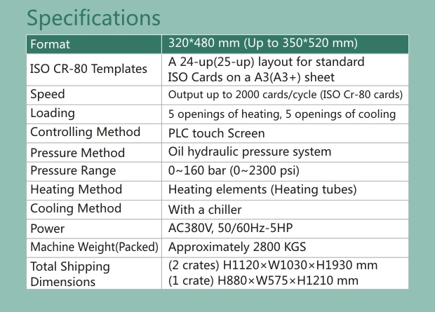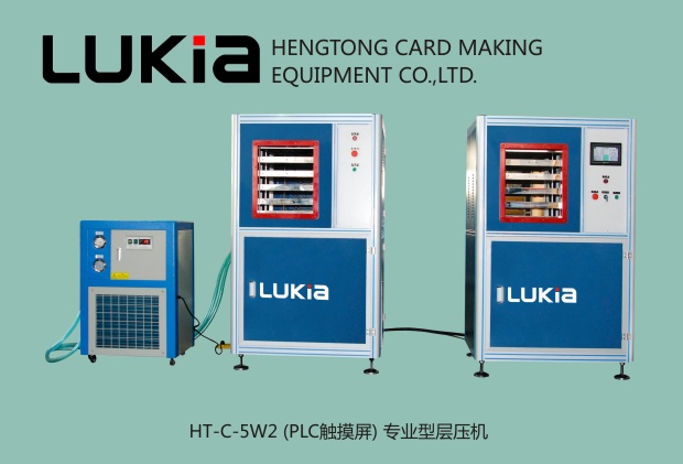 HT-C-5W2 (PLC觸摸屏) 專業型層壓機是針對專業廠家生產RFID,IC,ID芯片層壓而開發的高性能設備。有效控制生產過程中廢品率、難以操作等難題。也是為配套制作二代身份證等高檔證件卡、銀行卡、公交一卡通、高速公路、社保卡等專業制作卡片的公司、卡廠開發的專業PVC智能卡層壓機。