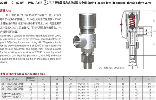 天正彈簧微啟式外螺紋安全閥(A21H)